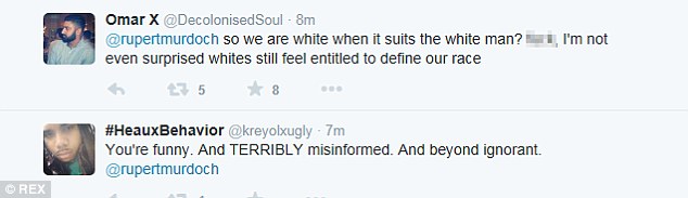 Murdoch then attempted to explain his stance by saying: 'Everybody-attacks last tweet. Of course Egyptians are Middle Eastern, but far from black. They treated blacks as slaves.'