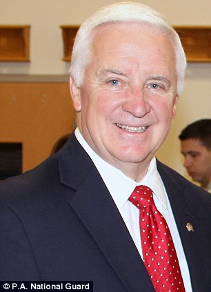 Pennsylvania Governor Tom Corbett, left, signed an execution warrant for Roney on Friday. The rapper was in a group called C.E.B. at the time of the shooting in 1996 he is pictured top left along with Warren McGlone, right, who was involved in the same heist