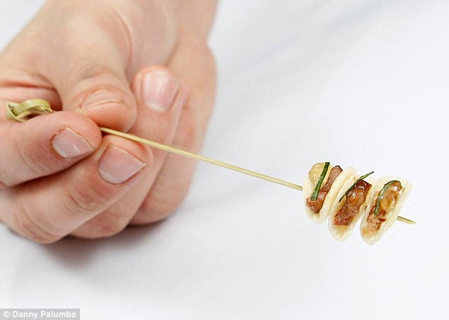 'It was pork belly, romaine lettuce and grilled heirloom tomato on a plate - separately,' Danny told ABC News. 'I was like, "Well, this is ridiculous and contrived" so we started talking about doing awful, pretentious things with food.'